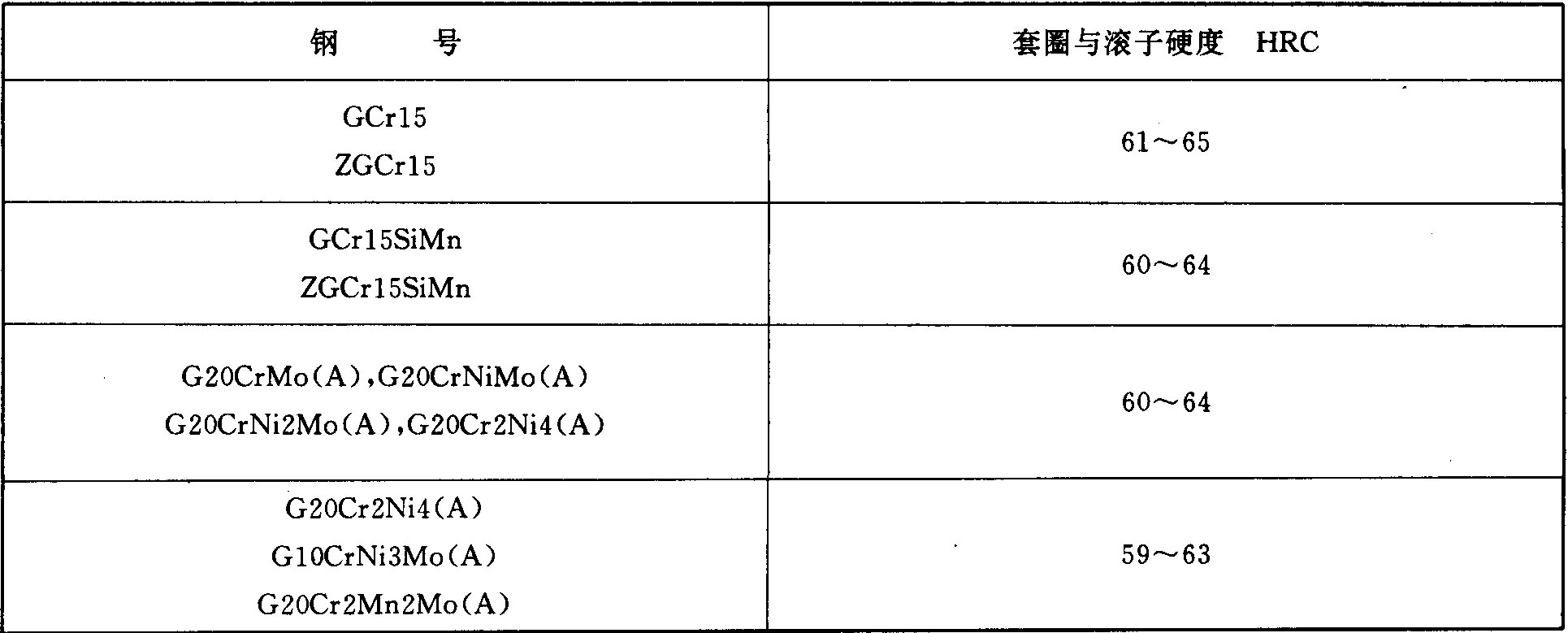 轴承套圈和滚子硬度按表2的规定。
