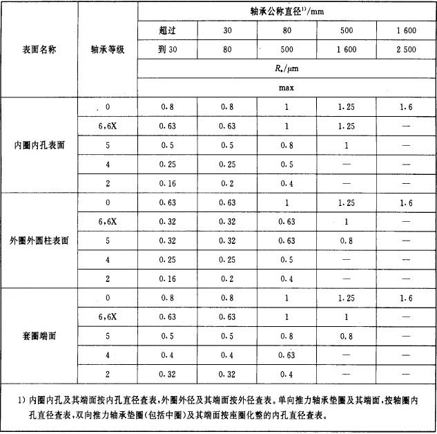 轴承配合表面和端面的表面粗糙度按表1的规定。