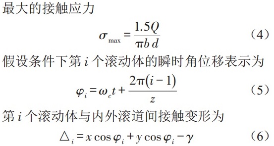 其中:E、μ分别为滚动轴承弹性模量及泊松比;mb、md为接触椭圆长短半轴系数,与曲率函数F(ρ)有关的无量纲量。