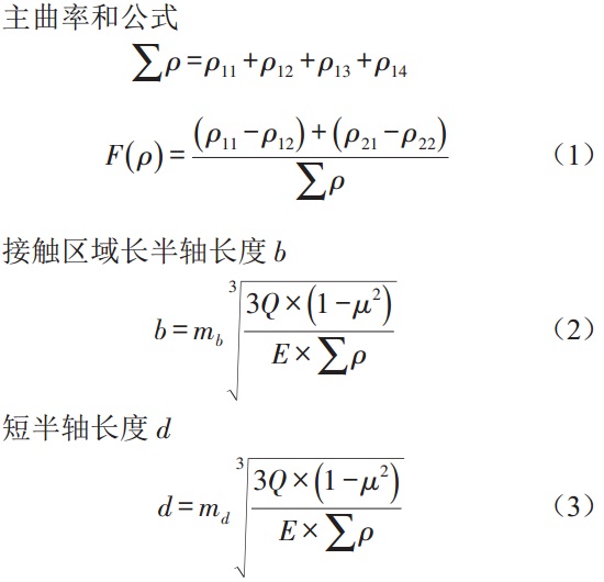滚动轴承滚子与内外圈滚道间的接触可以看作点接触。载荷作用下接触面由最初的一点扩展为椭圆形的接触面。赫兹接触理论关于点接触的计算如下
