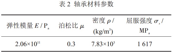 由于滚动轴承的塑性变形很小,将滚动体设置为各项同性的线弹性材料。滚动轴承6312材料选用GCr15,材料参数如表2所示。