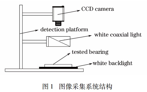 光源的选取对轴承缺陷检测的影响很大,若是照明达不到一定的要求,即使再好的相机也无法采集到理想的图像,而一旦采集到的图像存在问题,那么运用再先进的算法也无法得到想要的结果。本文的检测对象是轴承,为金属器件,所以优先考虑对金属器件检测能达到较好照明效果的白色同轴光源。为了形成一定的实验对比,进一步优化实验效果,同时考虑到要对轴承的轮廓进行提取,因此选购了白色背光光源。